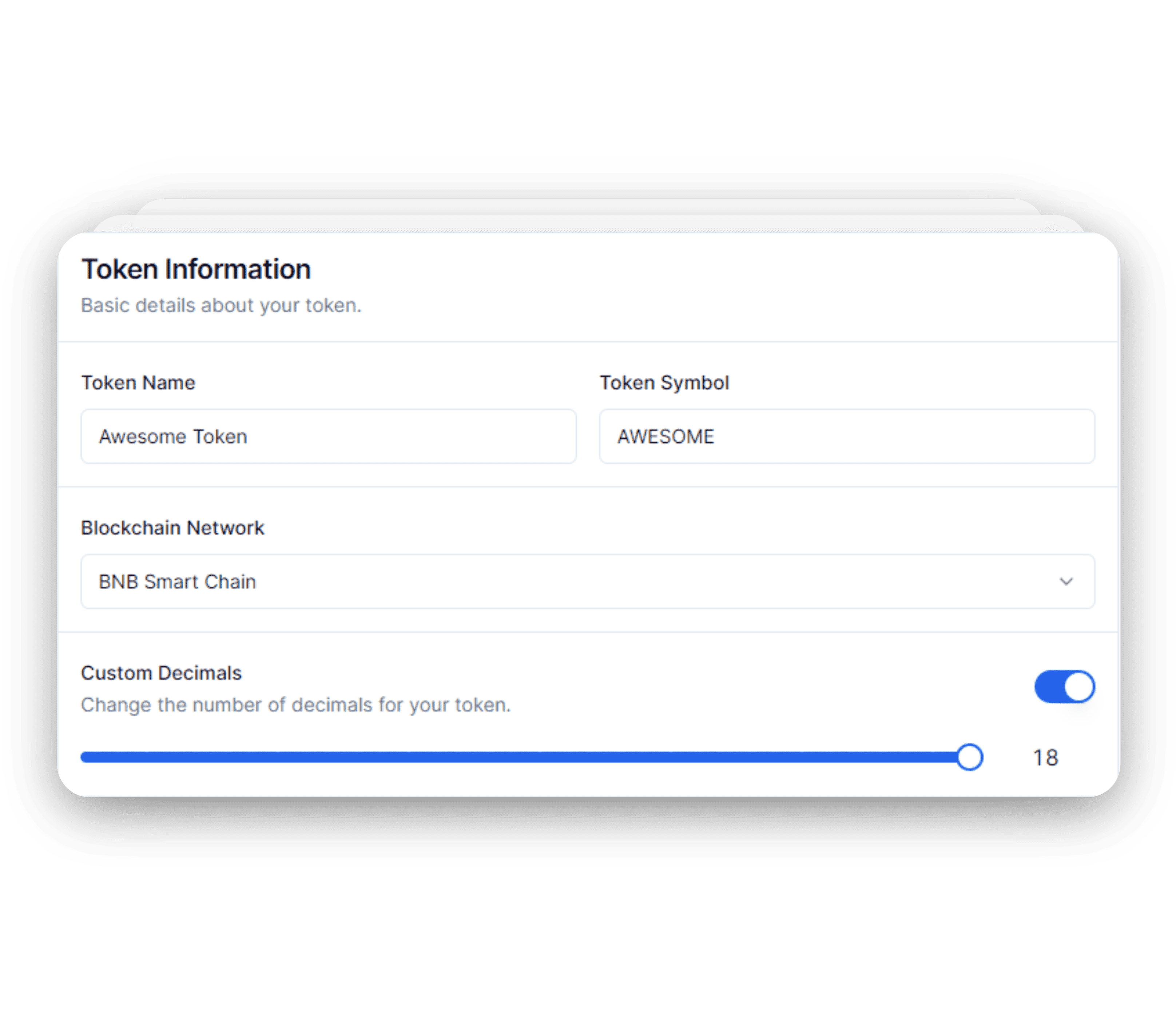 We also offer Deflationary tokens in our app. Deflationary tokens are tokens that have a mechanism to remove tokens from supply, usually a burn tax. This will reduce the total supply of the token over time, making it more scarce and valuable.
